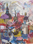 Ein abstraktes, farbenfrohes Gemälde mit Kuppeln und Türmen als moderne Interpretation von Salzburg. Dynamische Pinselstriche und leuchtende Farben erinnern an die Stimmung des Salzburger Ruperti Kirchtag. (Startbild oben) Ein modernes, zeitgenössisches Kunstwerk, das Räume inspiriert und zum Leben erweckt. Im Format 110x110 cm in Acryl-Mischtechnik gemalen. Wenn du Lust hast, das Werk live zu erleben, dann freue ich mich über einen Atelierbesuch. Einfach Termin ausmachen Mobil: 0664 / 142 62 95 |